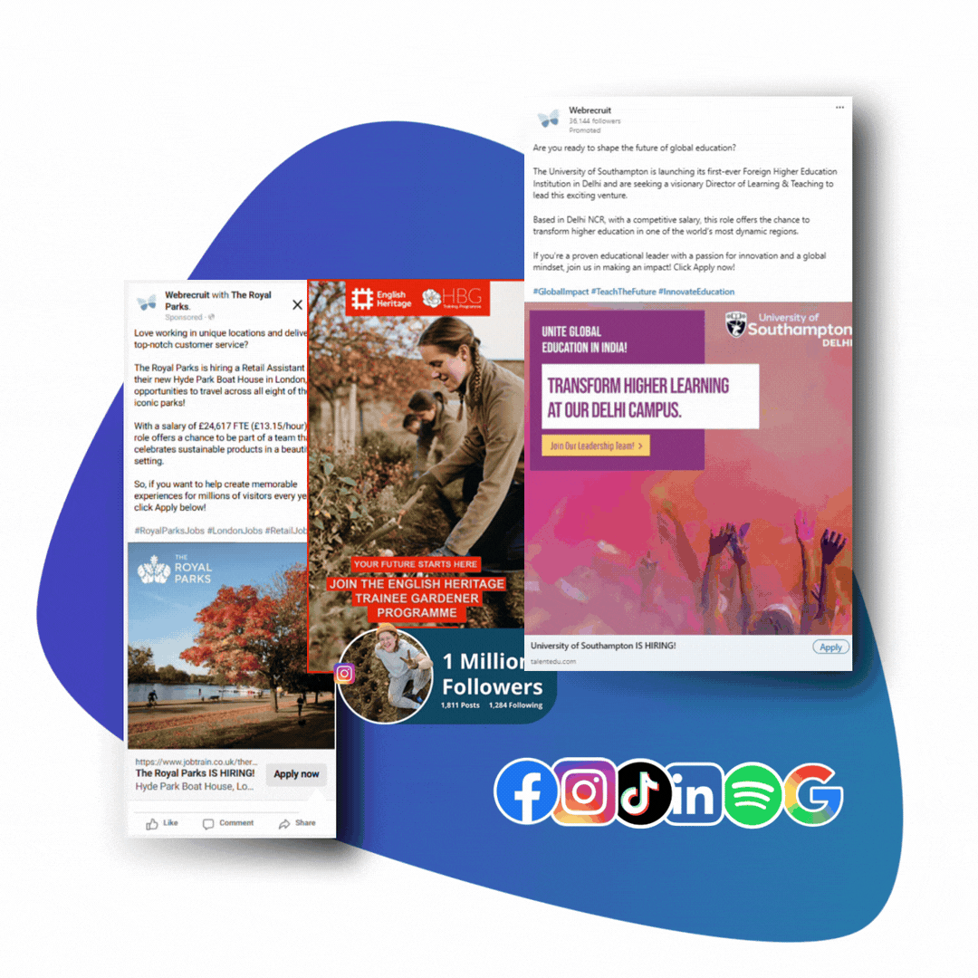 We work with 500+ media partners including all major job boards (Indeed, LinkedIn, Reed, Totaljobs), specialist sector sites, social media platforms, print publications, and digital audio channels. We’ll recommend the best mix for your specific roles and ideal candidate profile.